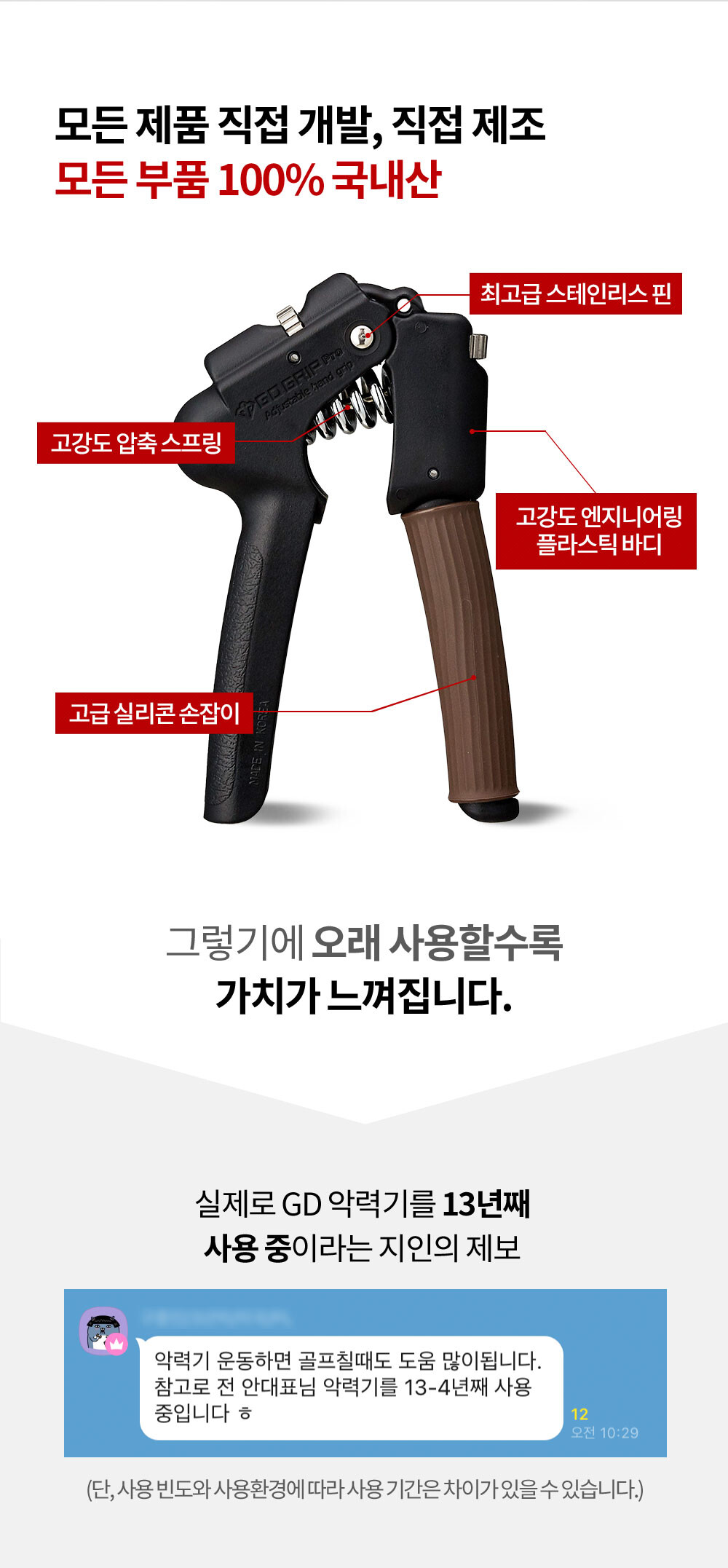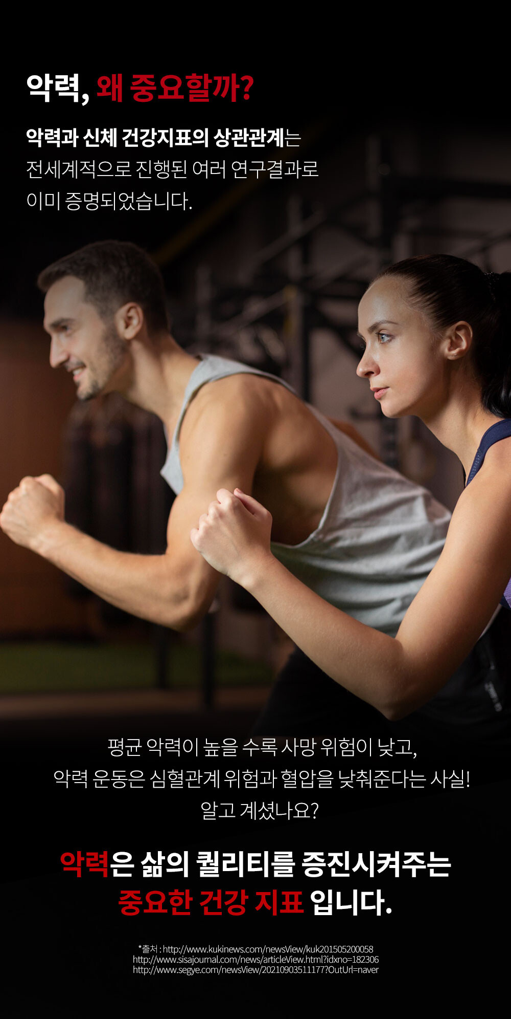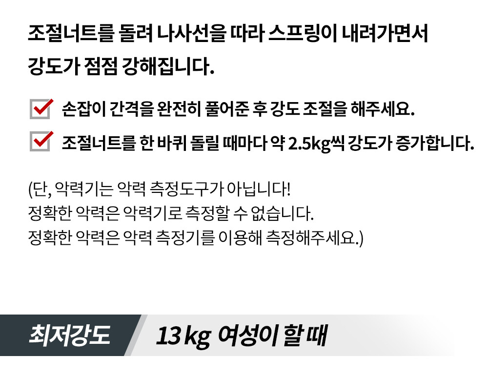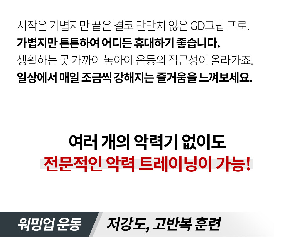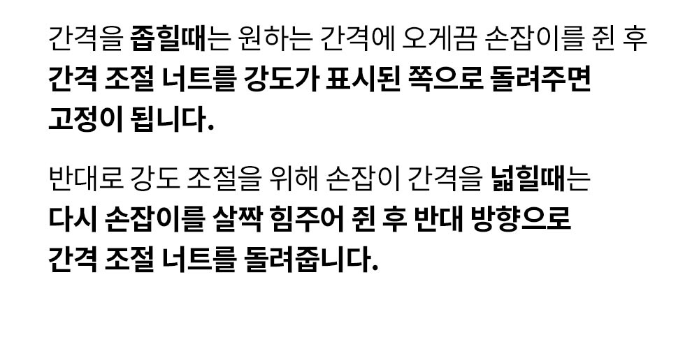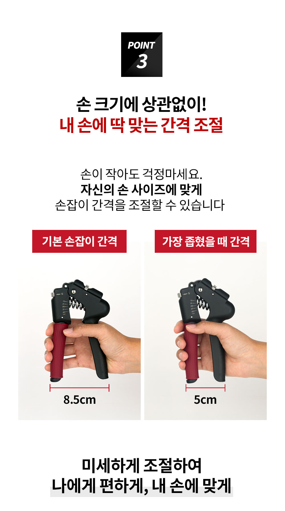 - 손잡이 간격 조절로 손 크기에 상관없이 누구나 편안하게 운동할 수 있습니다.