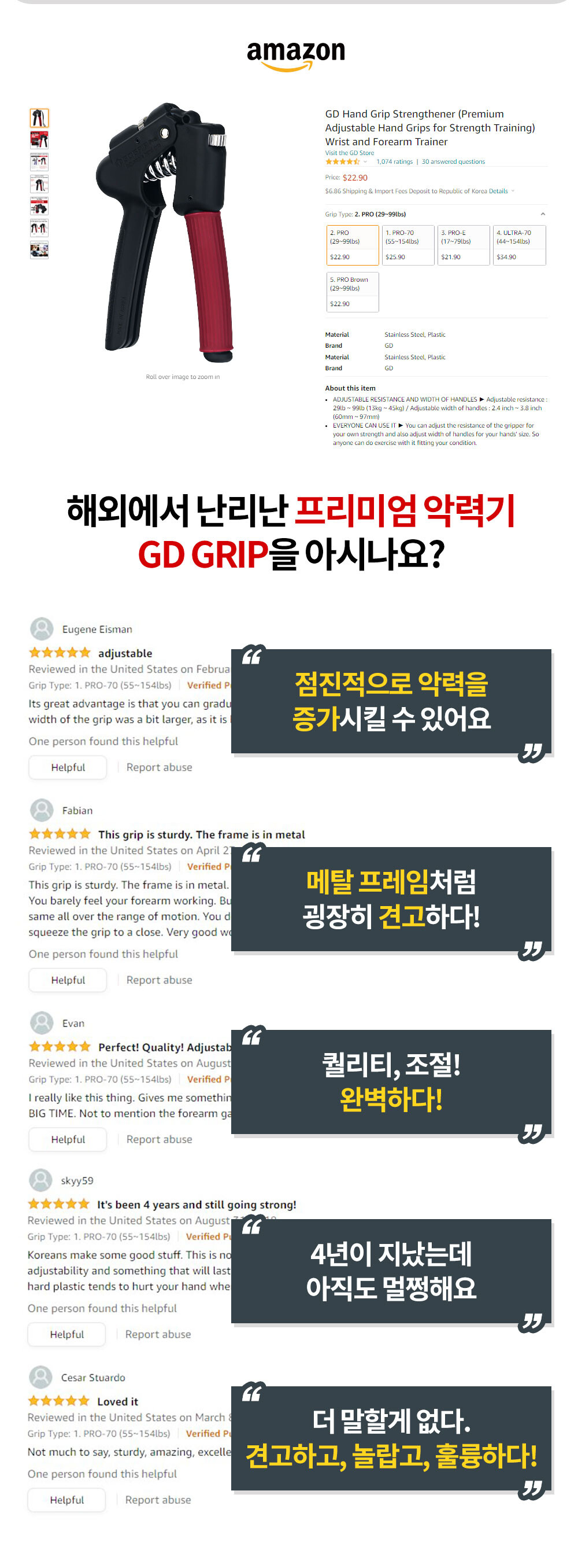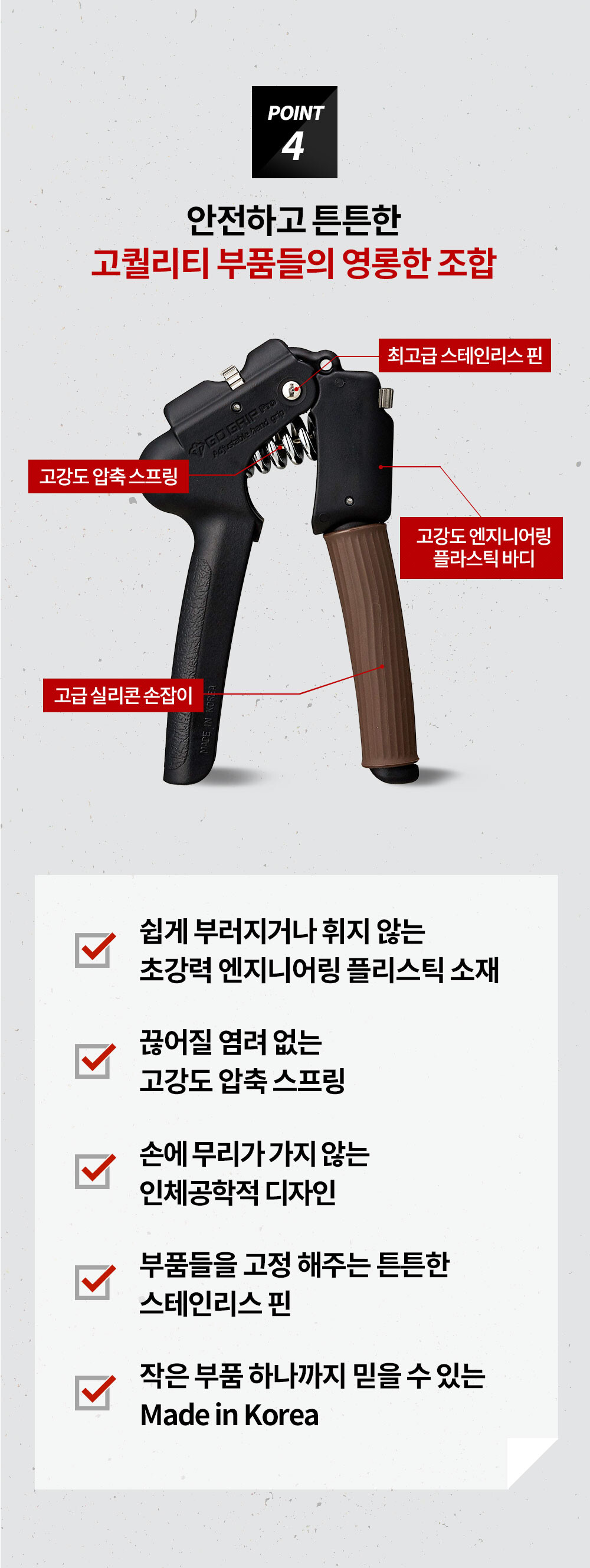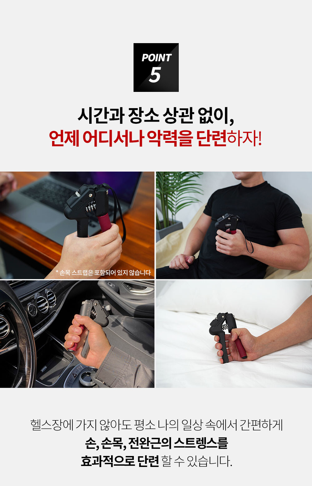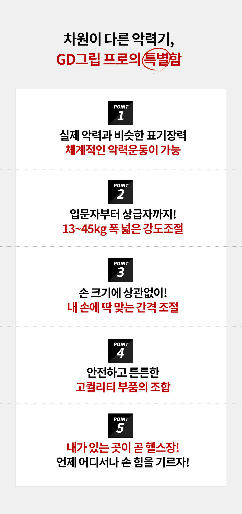 - 손잡이 간격 조절로 손 크기에 상관없이 누구나 편안하게 운동할 수 있습니다.