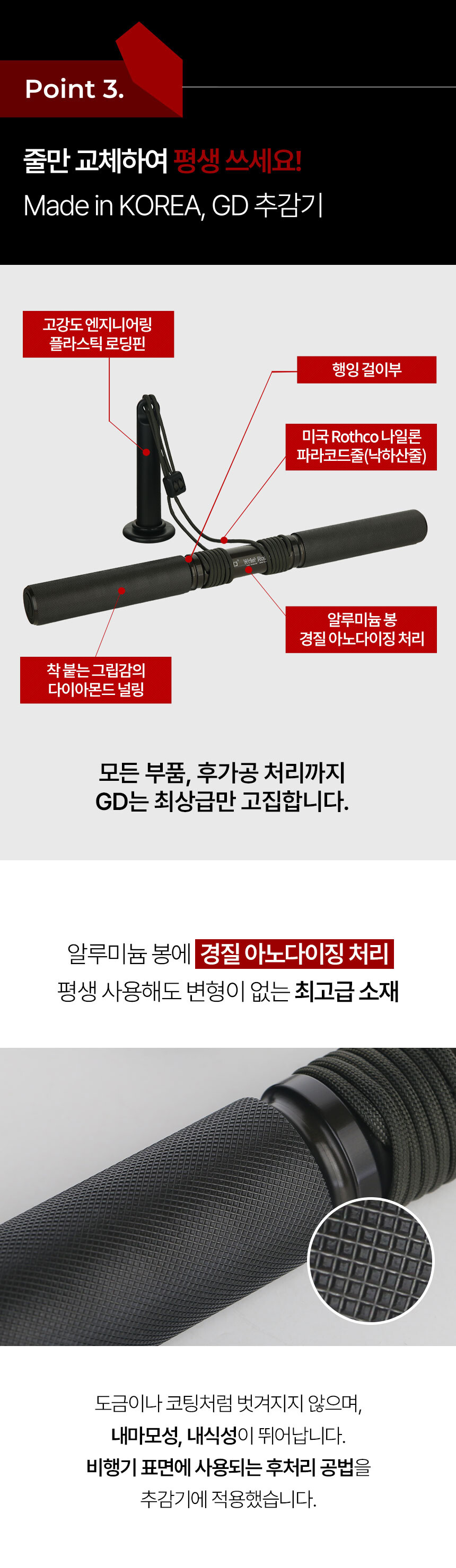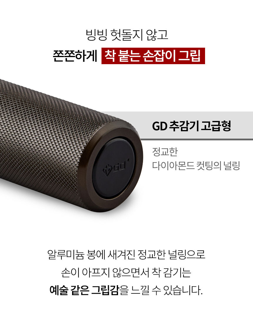 알루미늄 봉에 정교한 널링, 착 감기는 그립감이 일품인 GD 추감기 고급형.