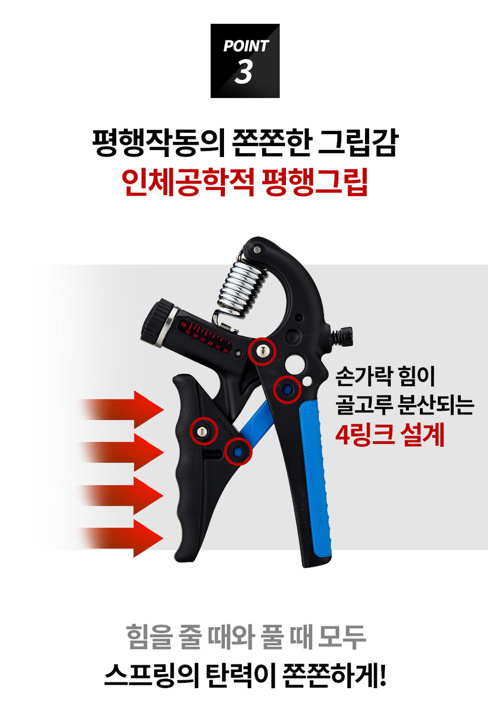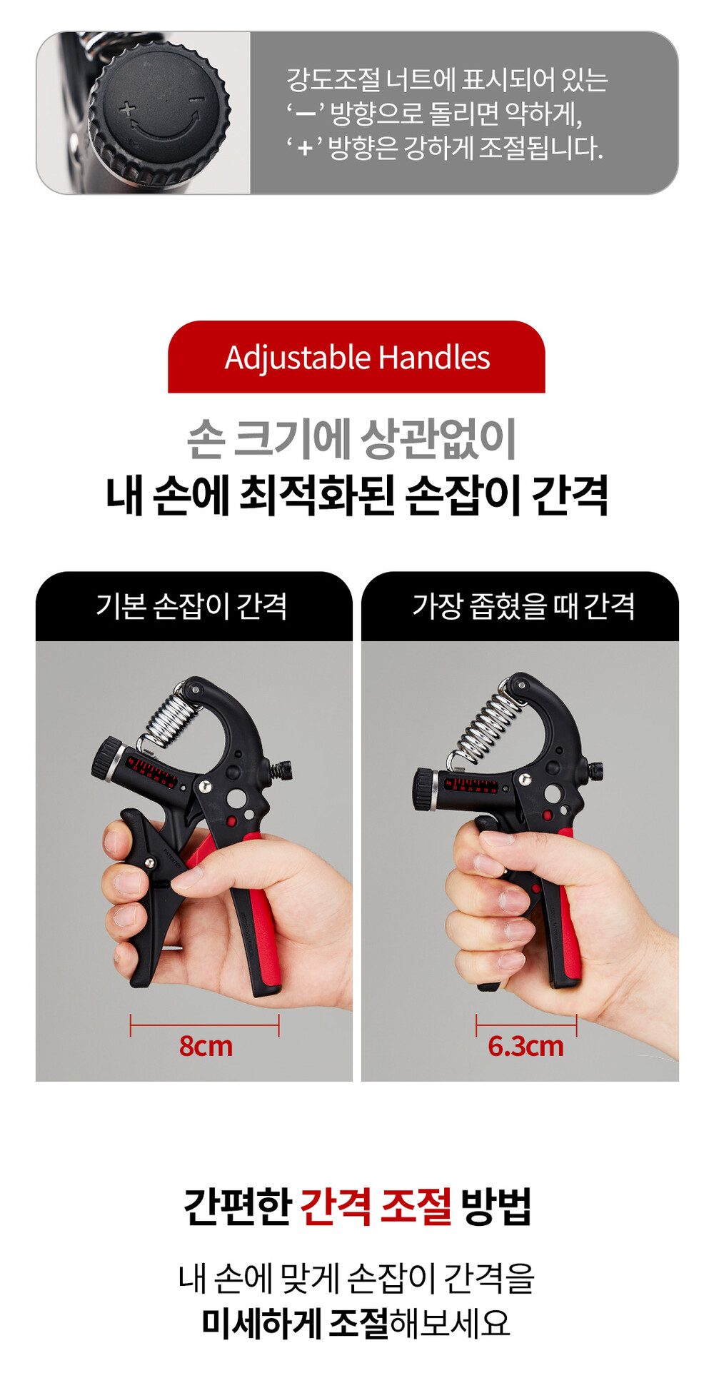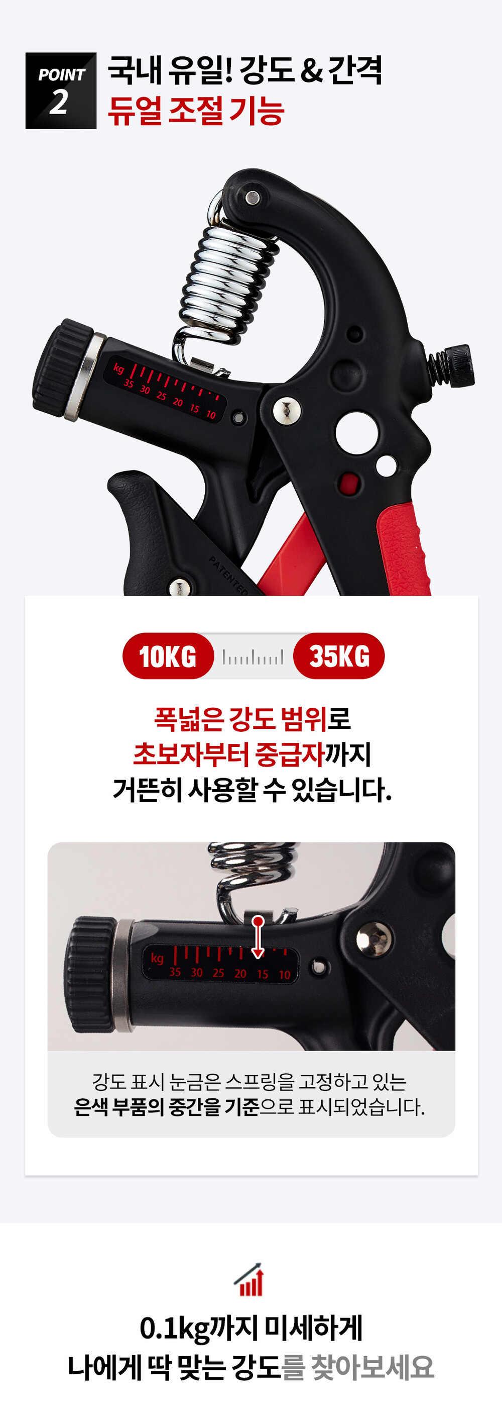 10~35kg [강도조절] + 손에 딱 맞는 [간격조절] + 인체 공학적인 [평행작동]까지!